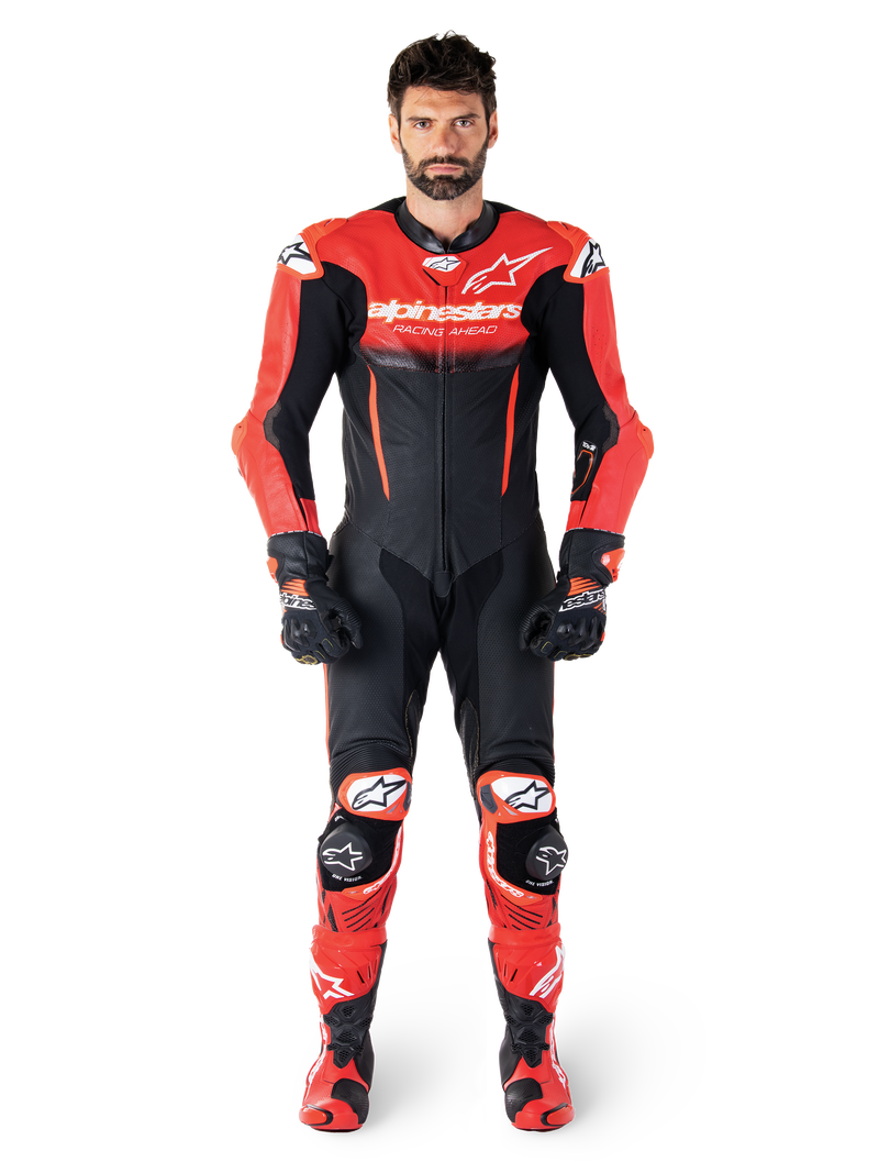 Designed for trackday riders, racers and advanced road riders, the GP-R7 1PC Leather Suit is optimized for performance riding, on the road or the track, and is constructed from premium Race-grade, 1.3mm bovine leather for superior abrasion resistance, flexibility, and comfort. With a race fit and extensive perforations for maximum airflow, this suit also incorporates a streamlined speed hump specifically engineered to complement Alpinestars Supertech R10 Helmet for optimum aerodynamic performance. It’s supremely protective too, thanks to its Nucleon PLASMA Pro armor.